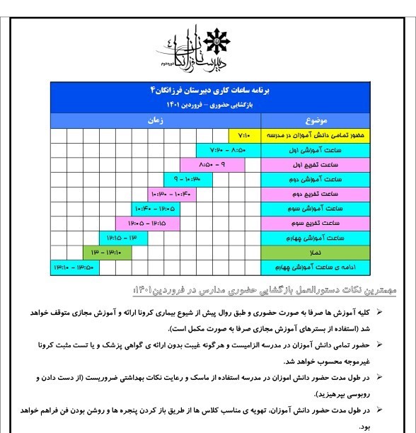 بازگشایی حضوری دبیرستان فرزانگان4- فروردین1401